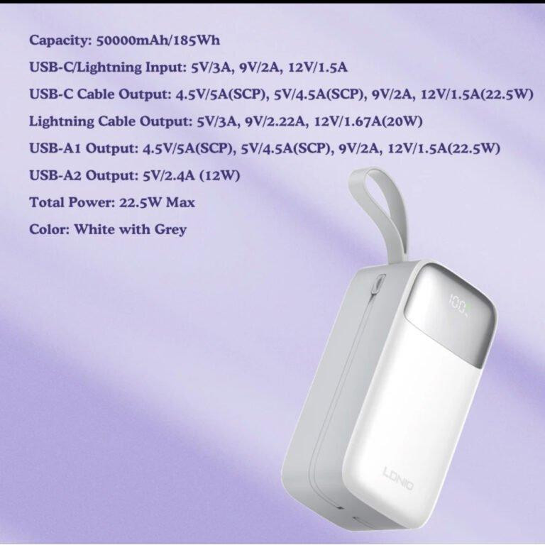 در دنیای امروزی پر از فناوری و دستگاههای الکترونیکی، اهمیت داشتن یک پاوربانک با کیفیت و با ظرفیت مناسب برای افرادی که برای مدتهای طولانی بیرون از خانه و دسترسی به شارژر ندارند قابل انکار نیست. یکی از محصولاتی که اخیراً توانسته است به شدت توجه بقیه را جلب کند، پاوربانک 50000 میلی آمپر الدینیو مدل Ldnio PQ50 میباشد. این پاوربانک با ویژگیها و امکانات منحصر به فرد خود، توانسته است نیازهای شارژ دهی مداوم کاربران را پاسخ دهد. در ادامه، ما به بررسی دقیقتر ویژگیها و مزایای این محصول پرداخته و به شما توضیح میدهیم که چرا پاوربانک LDNIO PQ50 میتواند یکی از بهترین گزینهها برای نیازهای شارژ دهی شما باشد. با ما همراه باشید تا در این سفر به دنیای فناوری، نقش این پاوربانک را به خوبی بررسی کنیم.