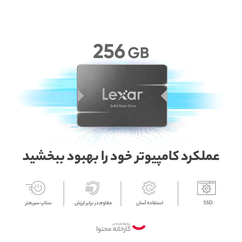 اس اس دی اینترنال لکسار مدل NS100 پیشنهاد ما به کاربرانی است که به دنبال افزایش سرعت و ظرفیت سیستمهای کامیپوتری خود هستند. این هارد فوقالعاده با وزن پایین و سرعت بالای خود یکی از بهترین گزینه در بازار برای ارتقا سرعت و عملکرد انواع لپتاپ و کیس کامپیوتر محسوب میشود. در دنیای امروز حفاظت از اطلاعات یکی از دغدغههای اصلی کاربران به شمار میرود؛ اما هارد دیسکها (HDD) به دلیل بهرهمندی از بخشهای الکترومکانیکی مقاومت چندان بالایی در برابر ضربه، شوک و لرزش ندارند و با کوچکترین مشکل میتوانند منجر به آسیب به اطلاعات و حتی از دست رفتن آنها شوند؛ اینجاست که مدلهای اس اس دی از جمله لکسار مدل ns100 به کمک ما میآیند. اس اس دی اینترنال لکسار مدل ns100 محصولی کاربردی و بینظیر از برند آمریکایی لکسار است که بیشتر از ۲۵ سال سابقه در زمینهی تولید ابزارهای ذخیرهسازی اطلاعات از جمله رم، فلش و هارد دارد. این حافظهی ذخیرهسازی اینترنال با ابعاد ۱۰۰.۴۵ در ۶۹.۸۵ در ۷ میلیمتر و وزن ۳۴ گرمی خود به آسانی در کیس یا لپتاپ شما جای میگیرد و میتواند کارایی آن را تا چندین پله ارتقا دهد.